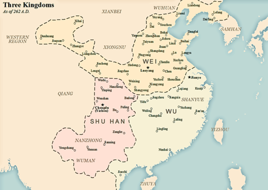 A map showing the Three Kingdoms (image credits: Seasonsinthesun 2017)