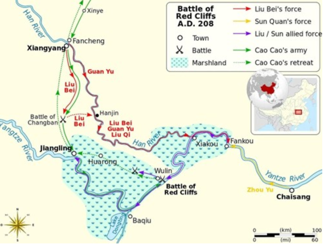 An overview of the Battle of Red Cliff (image credits: Semhur 2009)