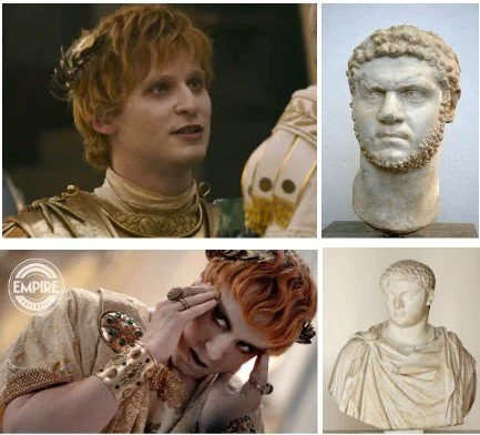Aside from flamboyant mannerisms and costuming, the portrayal of Caracalla and Geta as pale redheads is surprising for those familiar with this dynasty. On the one hand, the combination of Caracalla’s anemic and syphilitic appearance, as well as Geta’s heavy eyeshadow, are deliberate attempts at queer coding by Scott and co. On the other hand, the intentional whitewashing of the Severan brothers’ ethnicity is a deliberate shift from what we know about their heritage. Septimius Severus was the first emperor from North Africa and Julia Domna was the daughter of a high priest from Syria – so the brothers would not have been the whitest kids. We also have portraits of Caracalla, and the very few that remain of Geta, to confirm their mixed heritage. To my mind, the only reasons why a director would swap out ethnicities is to either diminish the impacts of the historical Caracalla and Geta as men of Afro-Asiatic heritage or, perhaps more pessimistically, to avoid any backlash or accusations of “DEI” and “woke” by the right-wing mob and media.