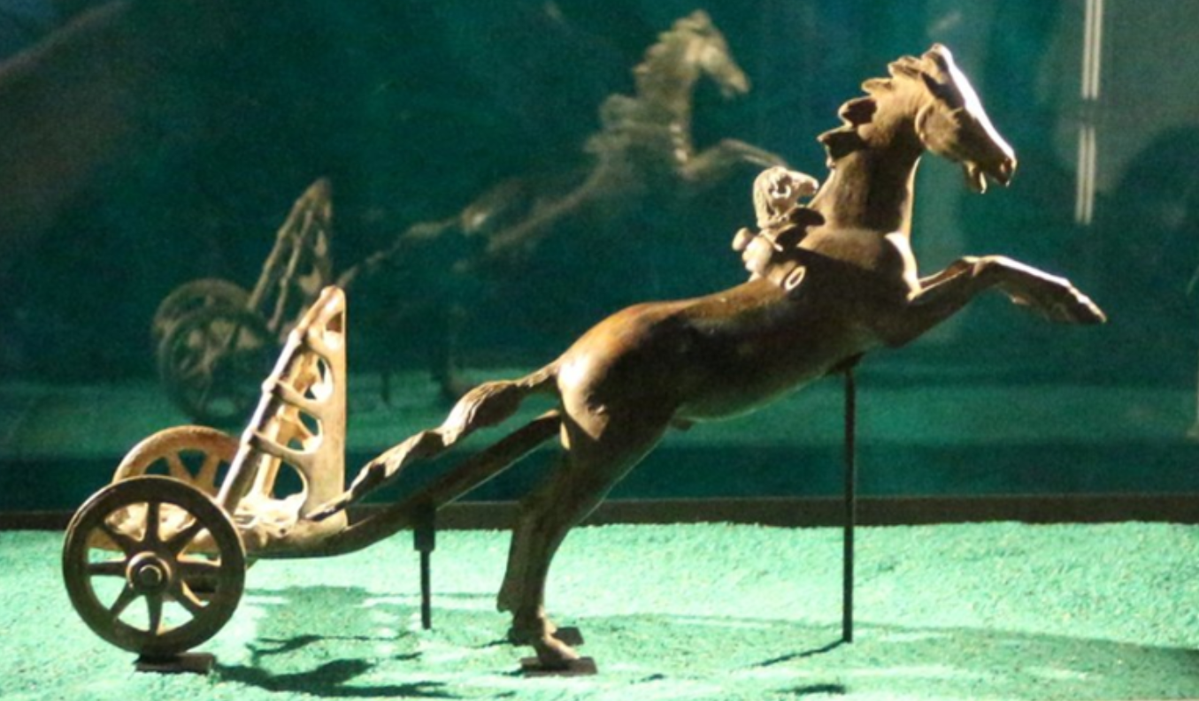 Most of the time you’ll be dealing with four of them. The horse on the left is the introiugus. This is the best horse on the team, and will likely be a celebrity itself. He’ll be the one guiding you round those high-stakes turns. The introiugus isn’t actually connected to the chariot in any way, neither is the horse on the far right. They’re funales, they’re not yoked but attached to the inside horses by reins at their head. The inside horses are the iugales, and they are firmly yoked to the chariot shaft. They’re less manoeuvrable but are doing all the hard pulling work.