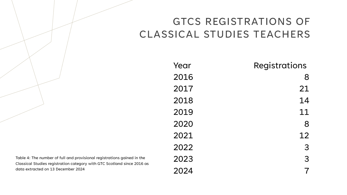 Number of teachers registering with the GTCS for Classical Studies since 2016