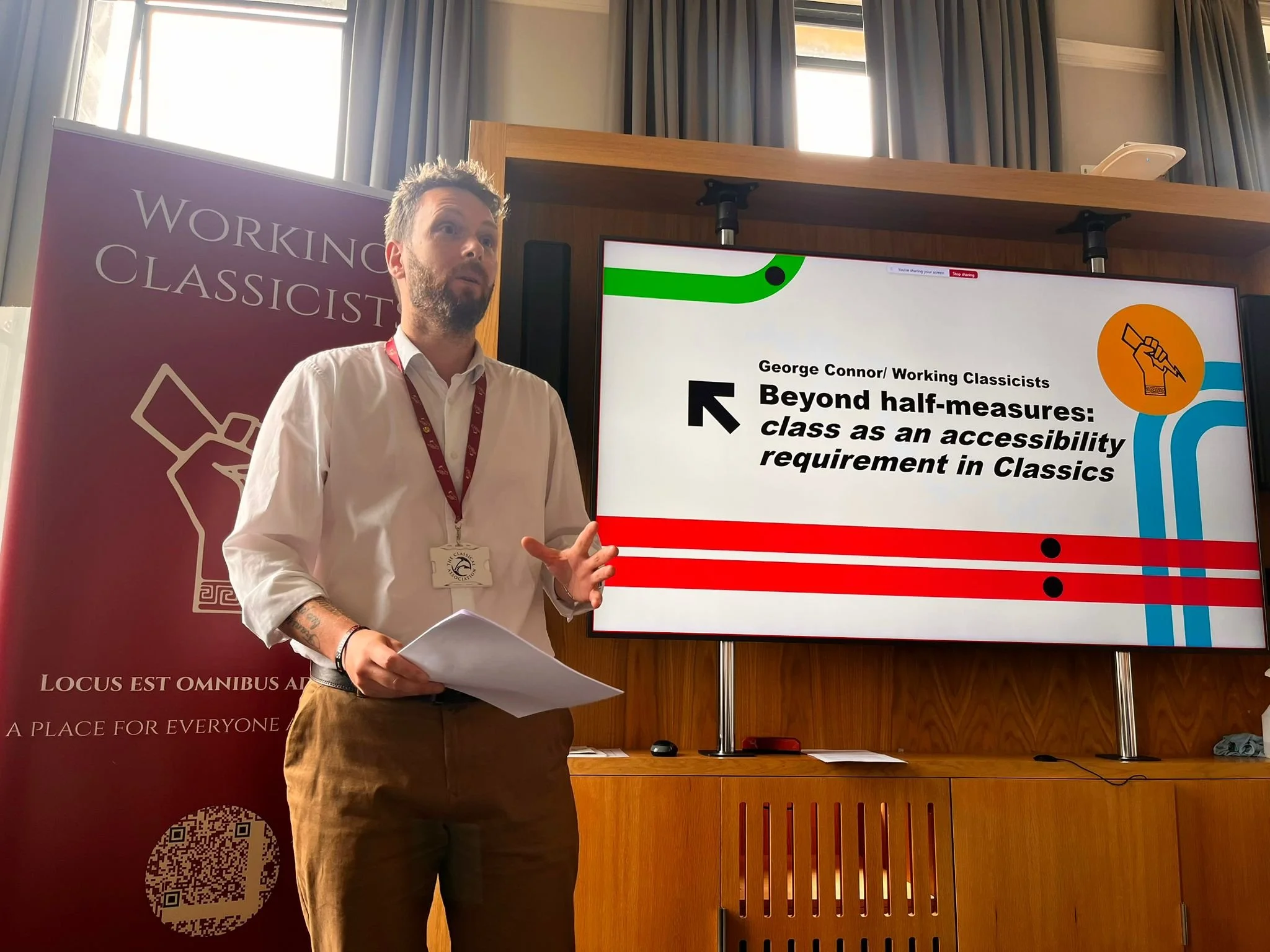 The panel, featuring contributions from Jordan Lynch, Alex Imrie, and Sam Newington, as well as ourselves, was explicitly about barriers to access for working class people. From in-school access, to opportunities with ancient languages, to publishing, to events, it is more difficult for someone from a state-school or less affluent background to establish themselves in the world of Classics.